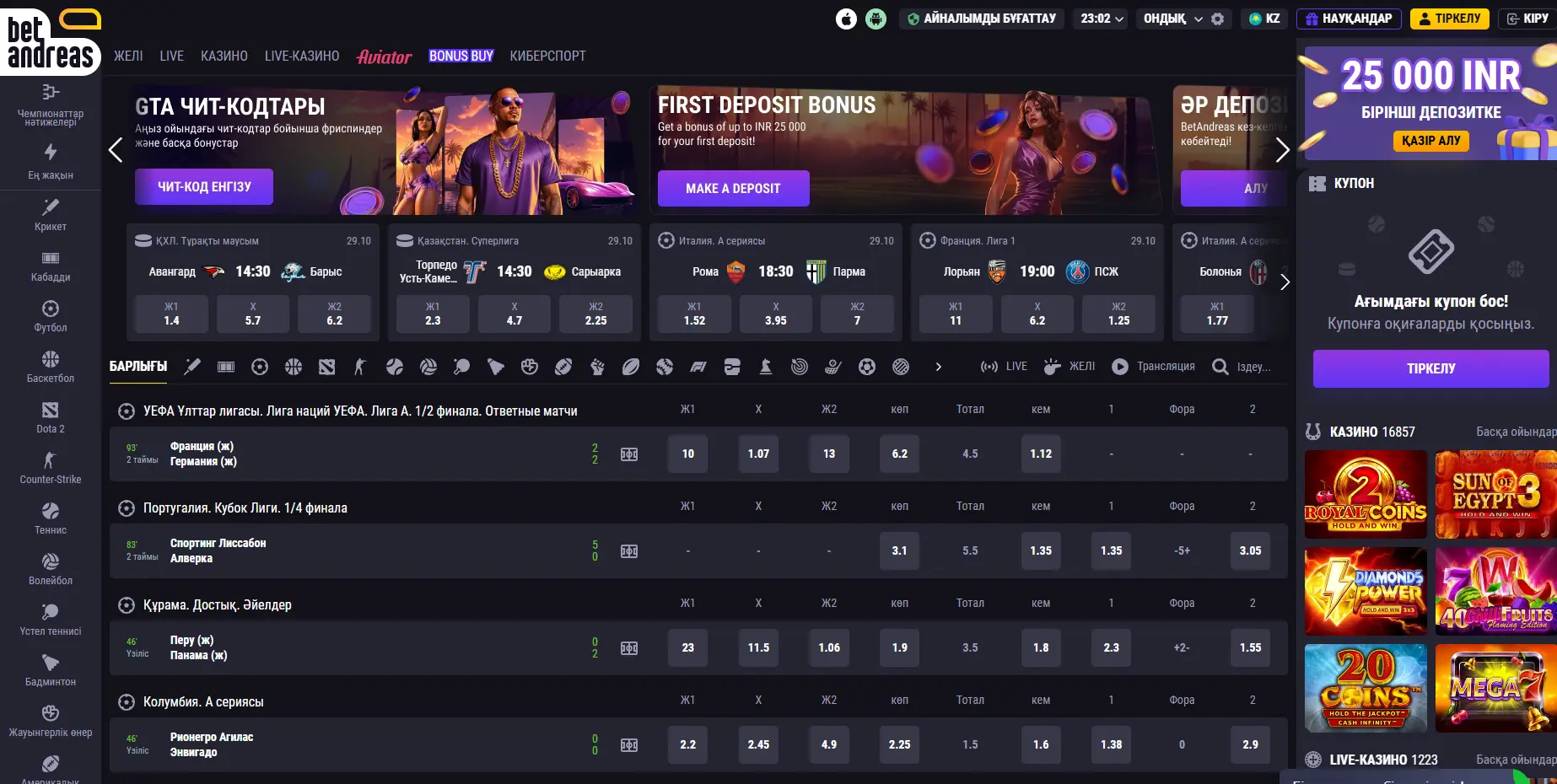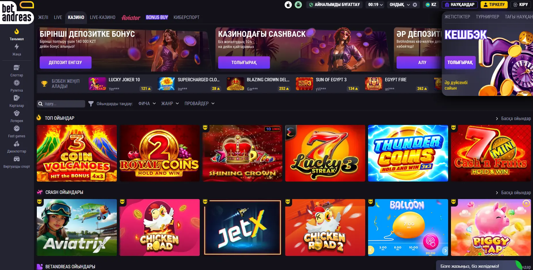 - Тұрақты бонустар және эксклюзивті Betandreas промокодтары;