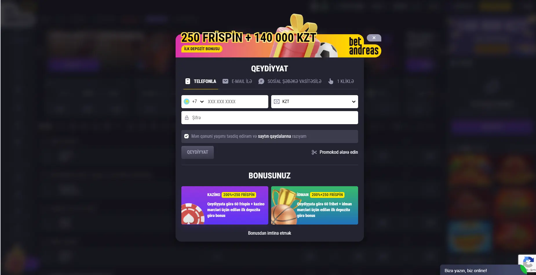 Актуалды Betandreas promo code тіркелу кезінде немесе жеке кабинетте енгізіп, бонус белсендіріңіз.