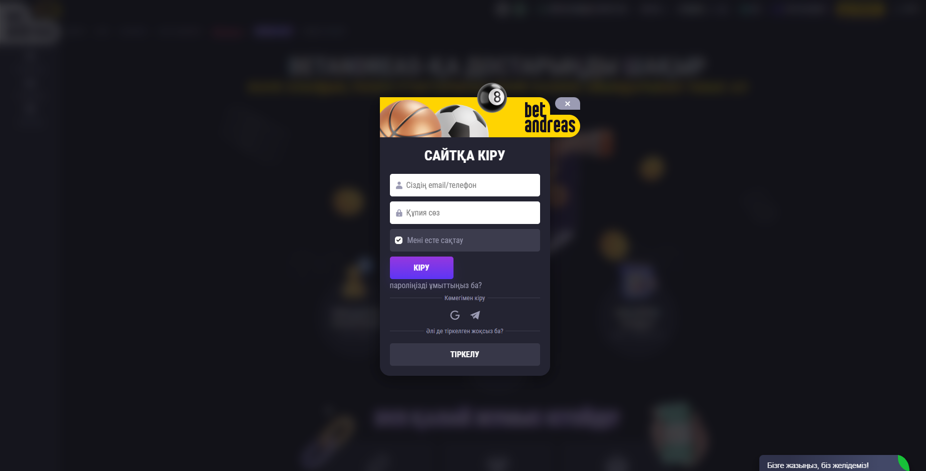 Тіркелу және Betandreas KZ логині